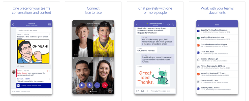 يتيح Microsoft Teams للمستخدمين إمكانية عرض المستندات وتحريرها مباشرة داخل التطبيق، والمشاركة في مكالمات الصوت والفيديو، وعرض سجلات المحادثات في سلاسل محادثات على غرار البريد الإلكتروني، وغير ذلك من المميزات الآخرى.